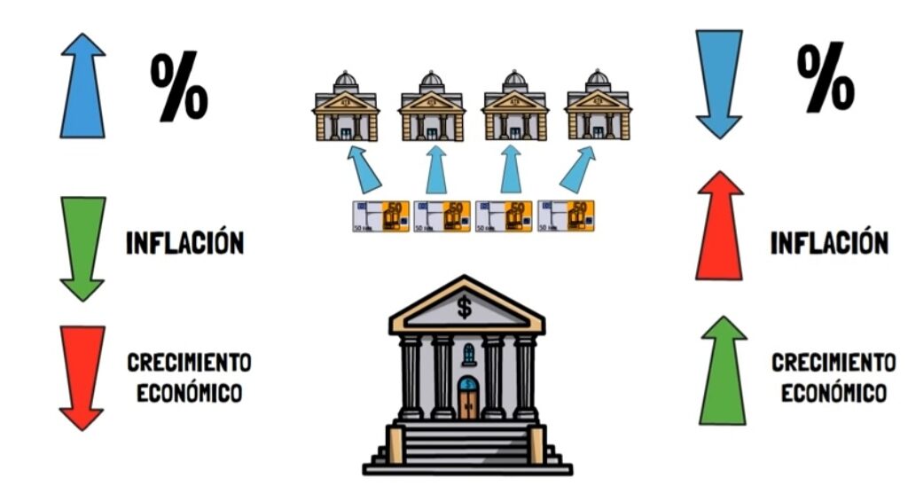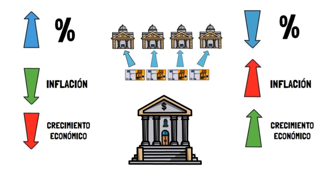 La respuesta del Banco Central es subir la tasa de interés, lo que afecta también al valor de una acción, ya que las personas preferirán invertir en renta fija, y afectará en un mediano plazo, ya que si la tasa de interés elevada genera el impacto deseado, que es frenar el consumo, las empresas comenzarán a reportar bajas en las ventas, lo que se traduce en una disminución en el precio de las acciones.