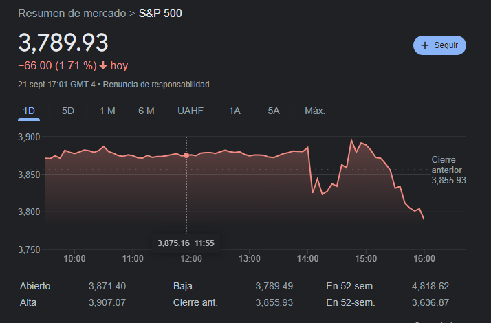 Precio del S&P 500 el 21 de Septiembre del 2022.